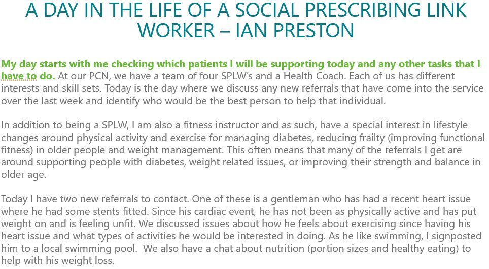 This Social Prescribing Day, Ian Preston, a Social Prescribing Link Worker (SPLW) at Hadwen & Quedgeley Primary Care Network shares what it’s like to carry out the role he’s been doing for six years and how it enables him to help individuals improve their health and wellbeing.